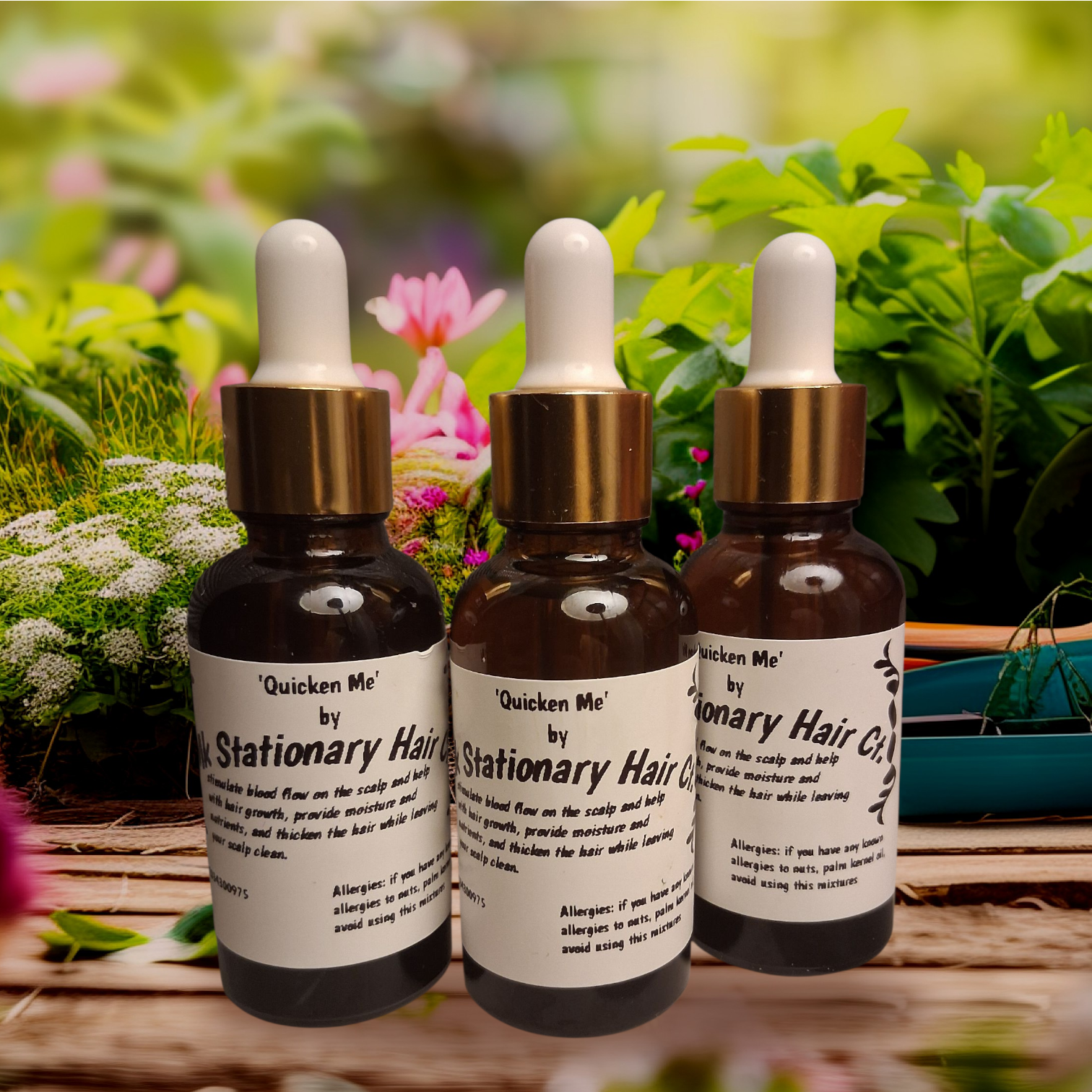 Stimulates blood flow on the scalp and helps with hair growth. 'Quicken Me' provides moisture and nutrients, strengthens and thickens thin, brittle hair, and leaves your scalp healthy and clean.